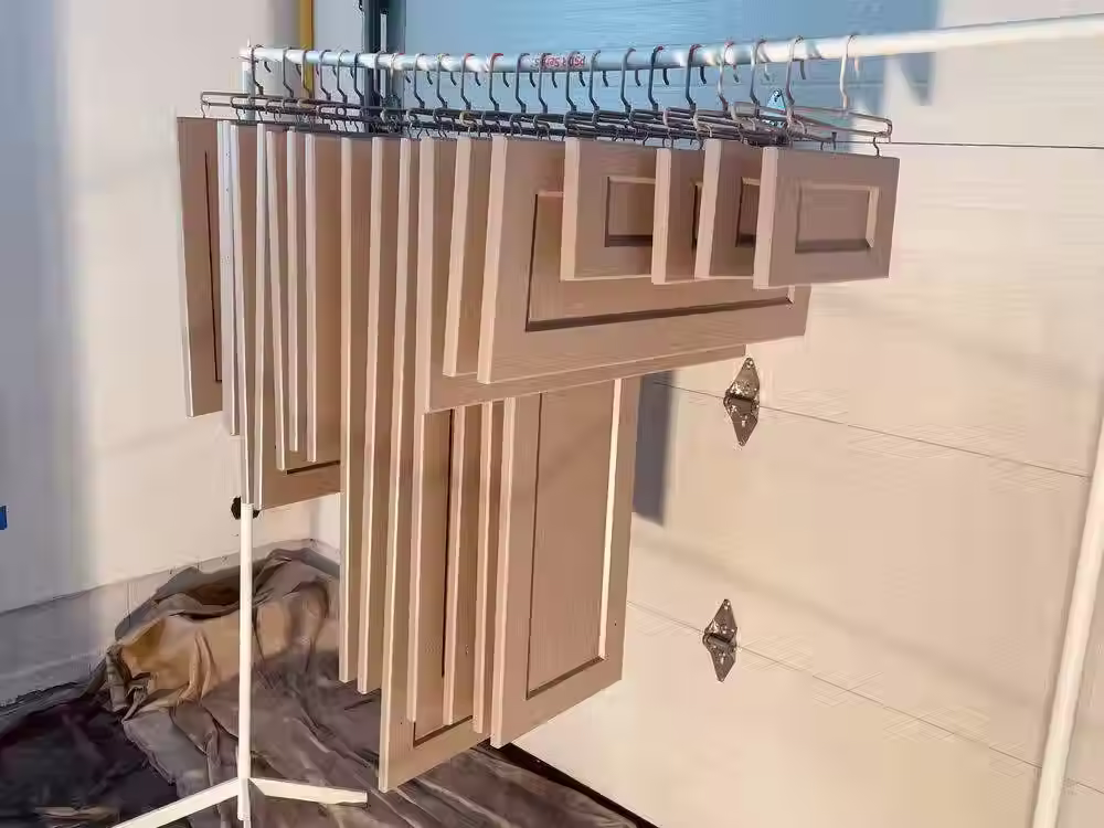 Instead of spending $20,000–$30,000 on new cabinetry, our proven refinishing process gives your existing cabinets a brand-new finish at a fraction of the cost. Using premium products and advanced Titan spray technology, we achieve smooth, durable, factory-quality results in the color and style of your choice. Whether you want a fresh, bright white, a bold modern tone, or a classic stained finish, we’ll help you customize a look that completely transforms your kitchen.